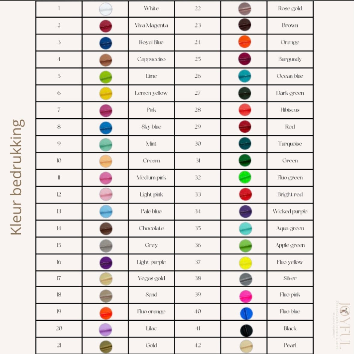 Bij het kiezen van een kleur krijg je de bijhorende foto van de speenkoord te zien!